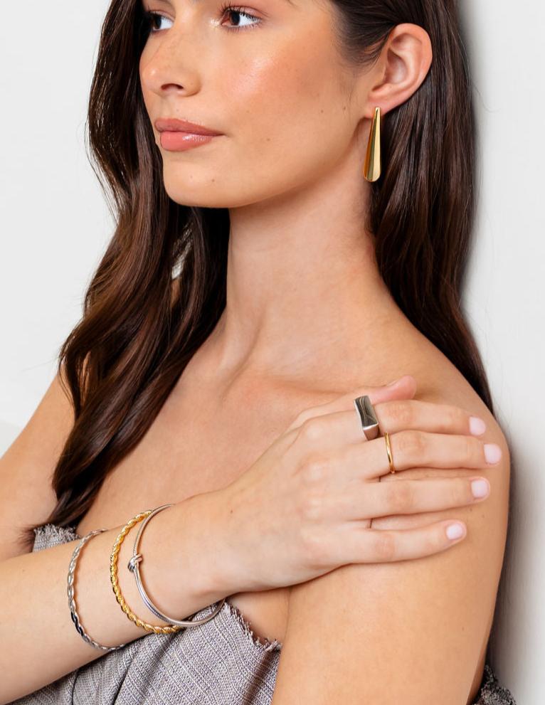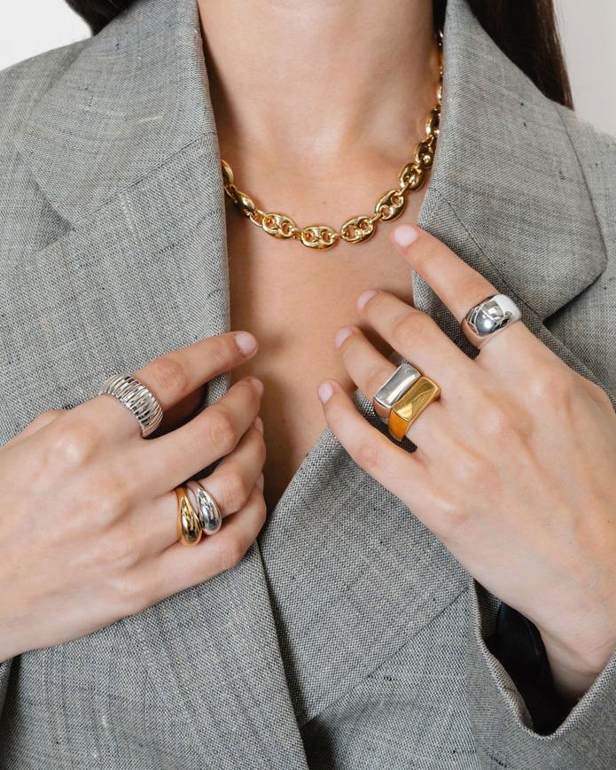 Introducing the Alessandra Ring, a bold accessory designed to make a statement. This striking rectangular ring features a smooth finish and measures 19mm x 8mm x 4mm high. Crafted from sterling silver with an option for 18k gold vermeil, it can be worn alone for a powerful look or stacked for added impact. Whether you choose the silver or gold vermeil version, the Alessandra Ring combines modern elegance with timeless style.