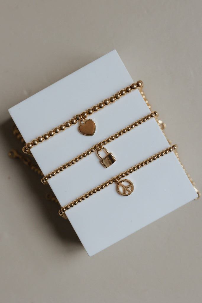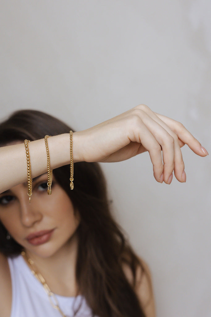 Bambini Perline Gold Charm Bracelet with Lock Pendant