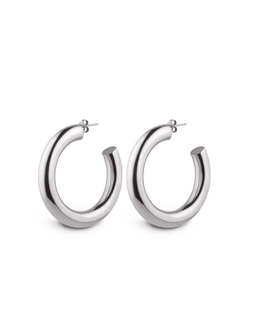 Our motto? The bolder, the better. A chunky take on your classic hoop, these tubular earrings are hand-finished in rhodium on a sterling silver base.