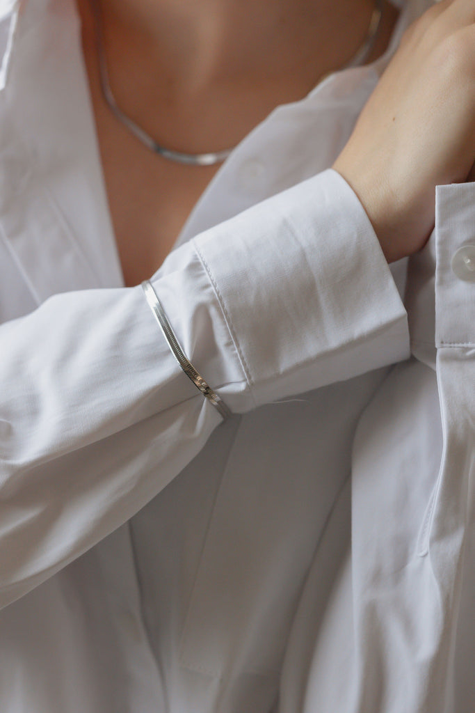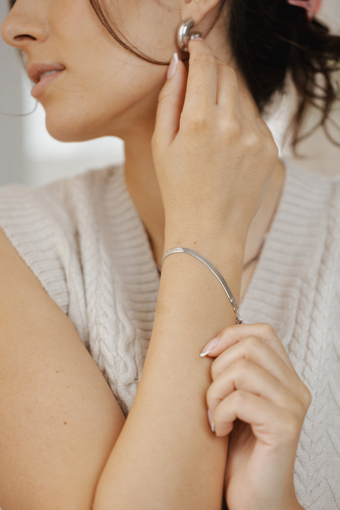 This silky "liquid" Silver Herringbone Bracelet is your new go to piece for a polished but edgy look. Made from 925 Sterling Silver with Anti Tarnish.