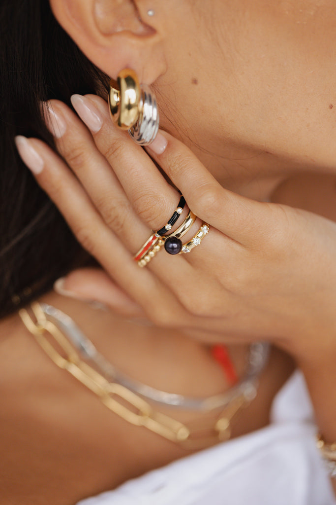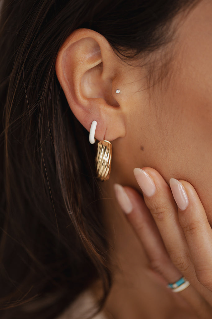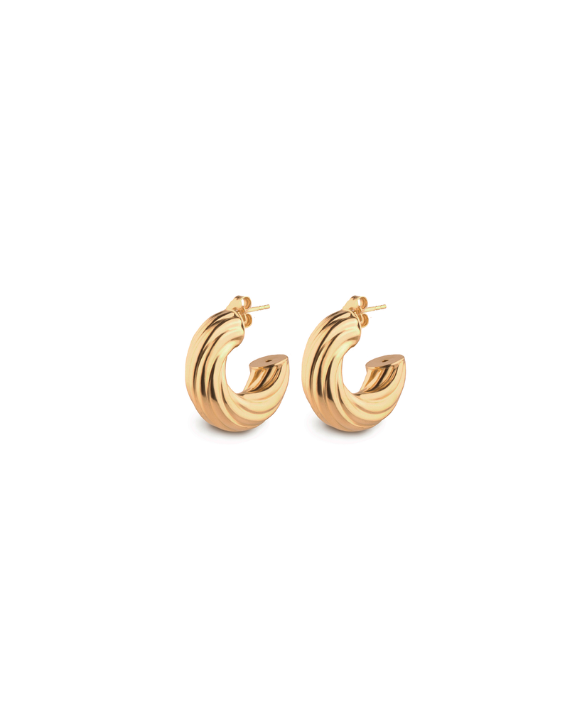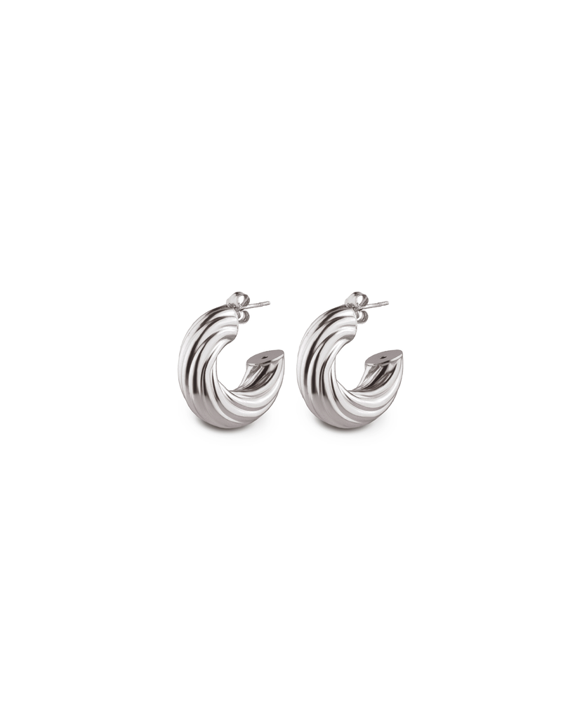 If you love the Ciambella Earrings, you will love this "twist". The Giro Ciambella Huggie Earrings offer a unique and captivating design. Available in both gold and silver. For a statement-making ensemble, pair them with the Giro Ciambella Medium Earrings.