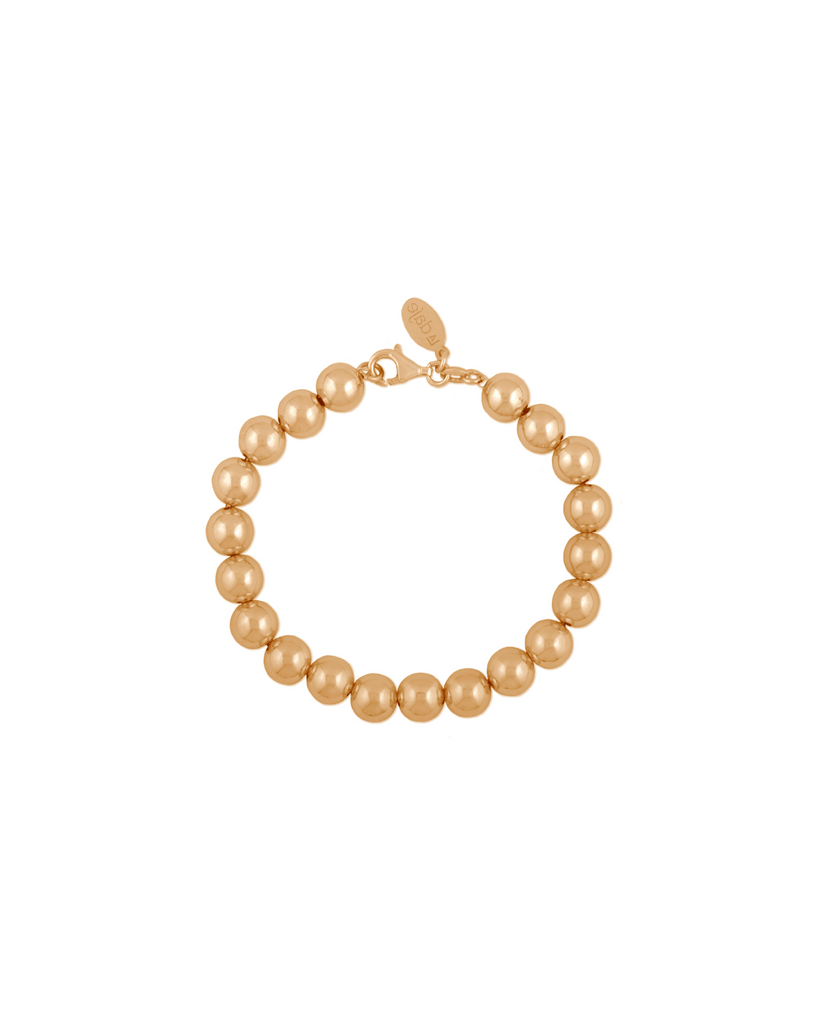 Introducing the Grande Perline Bracelet, a stunning 8mm beaded bracelet with a convenient lobster clasp, available in both gold and silver. This stackable accessory is the perfect complement to the Piccolo Perline Bracelet.