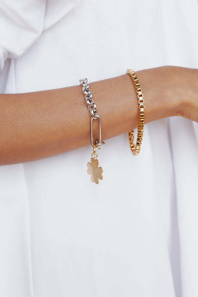 Another modern go-to chain. Hand-finished in 18k gold vermeil on a sterling silver base, this chain holds its own but can also be layered with other pieces for a bold and modern look.