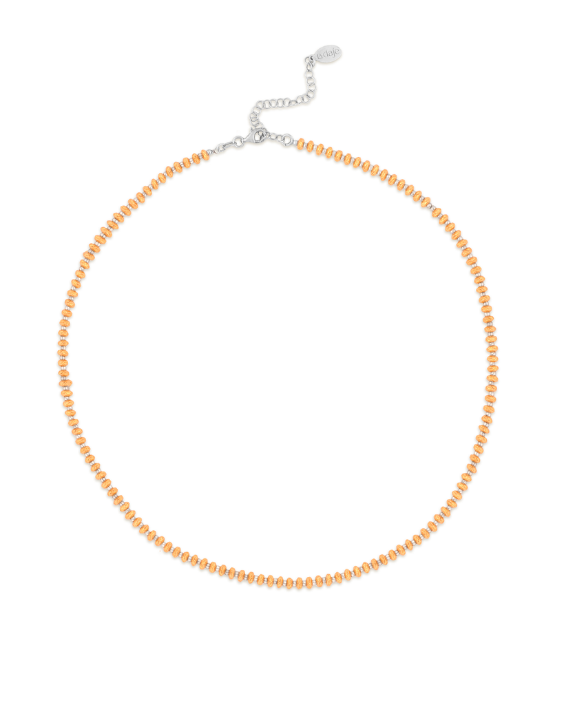 The Mista Chain, a stunning accessory that effortlessly combines the elegance of gold and silver. This necklace features a unique design with textured gold rollo links and silver beads placed in between. With its versatile style, this chain becomes the perfect canvas to showcase any of our pendants.