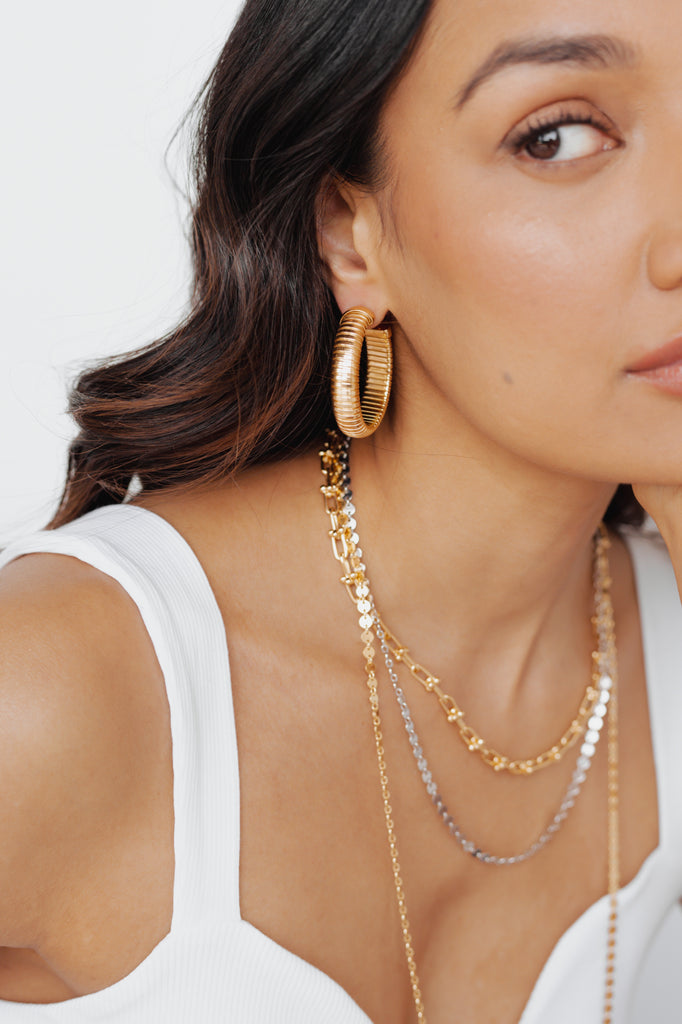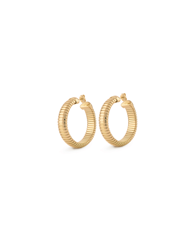 The old world tubogas chain gets an upgrade! Our Serpentino Hoop Earrings feature layers of flexible 18k gold vermeil tubular strips, tightly wound to create this classic look, reimagined as beautiful earrings.