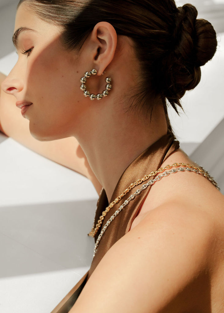 Introducing the Sofia Perline 8mm Earrings, a versatile accessory designed to elevate your style. Featuring lustrous 6mm Perline beads, these earrings are perfect for wearing alone or pairing with a simple chain for a sophisticated, polished look. Available in two elegant finishes—sterling silver with 18k gold vermeil or 925 sterling silver with rhodium plating—these earrings offer luxurious quality and timeless appeal.