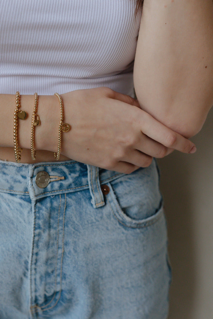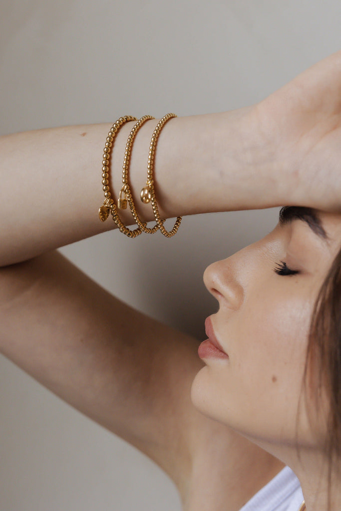 Bambini Perline Gold Charm Bracelet with Heart Pendant