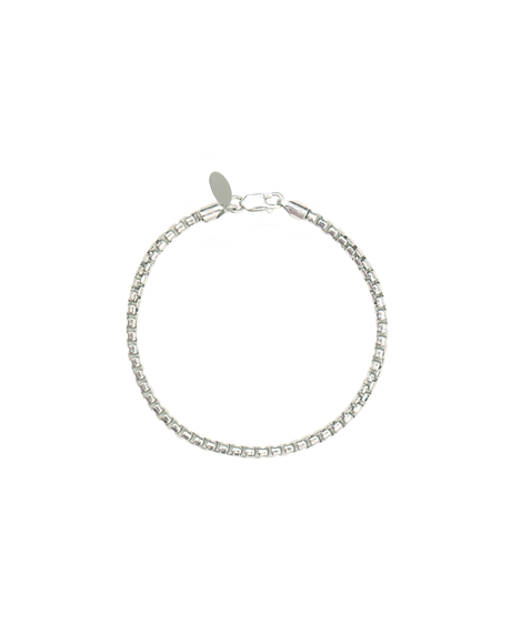Another modern go-to chain. Hand-finished in rhodium on a sterling silver base, slightly smaller than the Luca Chain, this rounded chain link bracelet pairs perfectly with our Navona Bracelet.