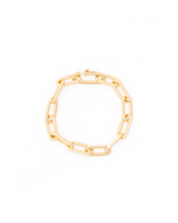 The bracelet you’ll never want to take off. Hand-finished in 18k gold vermeil, this rounded link chain features a sterling silver base and a unique paper clip closure.