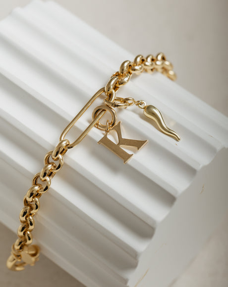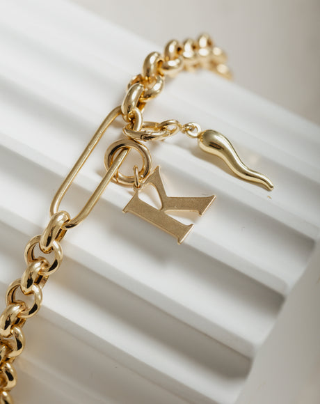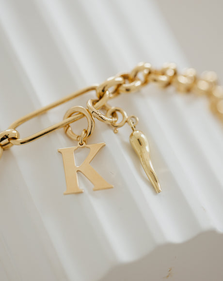 Meet your new favourite charm bracelet. This large rolo belcher link bracelet is statement-making enough to be worn on its own, but add a pendant (or two) to the unique paperclip link and you’ll never want to take it off. Handcrafted in 18k gold vermeil on a sterling silver base.