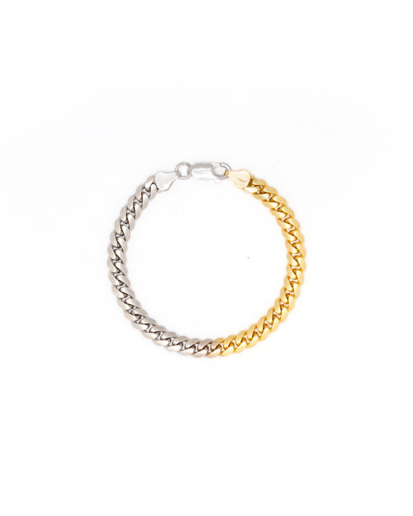 Can’t choose between gold and silver? Now, you don’t have to. This two-tone Cuban link chain features a sterling silver base, made in a mix of gold vermeil and rhodium. Say hello to the metallic duo of your dreams.