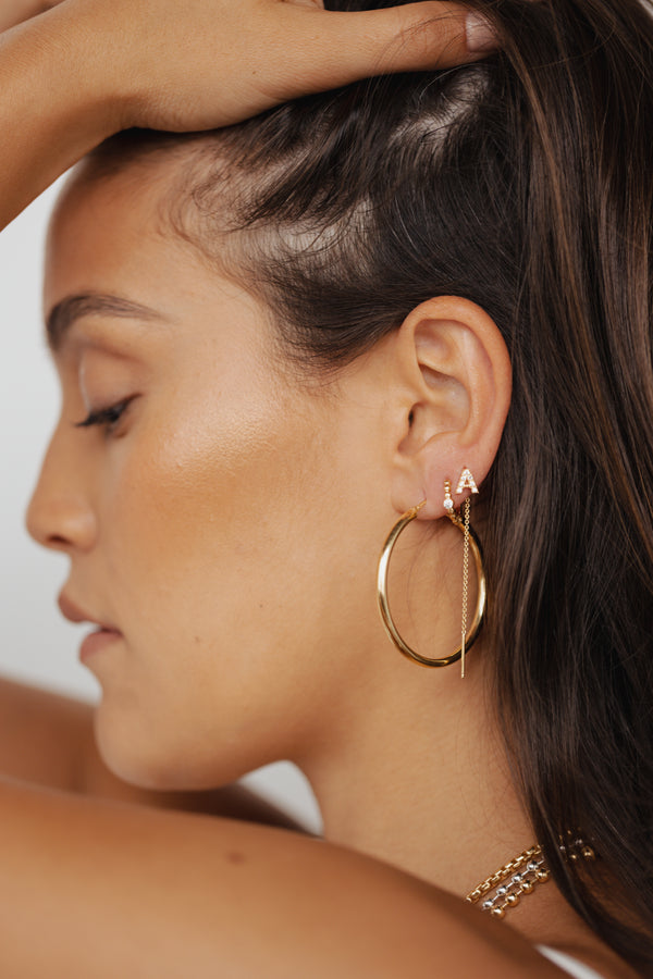 A jewelled earring that adds a touch of personalization to your style. Sold singularly, you can either purchase one to adorn your second or third hole for a trendy asymmetrical look or grab both to wear as a stunning set.